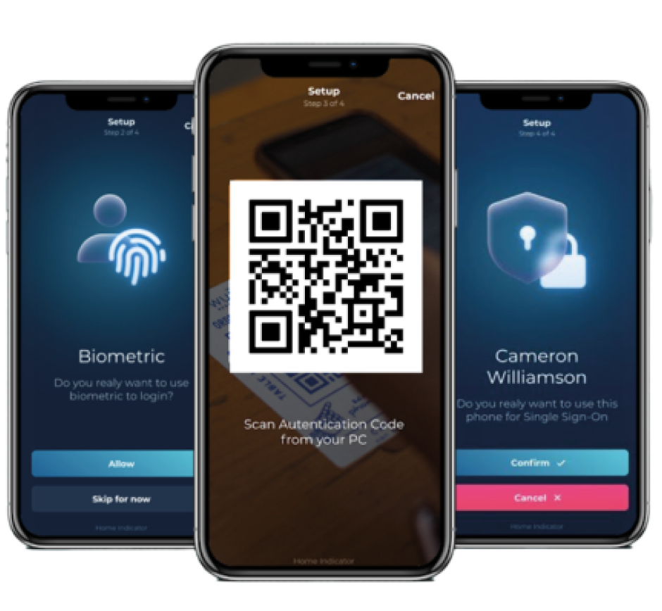 Смартфон користувача використовується як ключ доступу до облікових записів. Вхід підтверджується біометрично або PIN-кодом.
