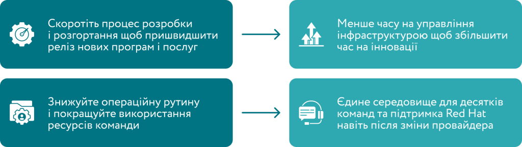 Для бізнесу і критичної інфраструктури – це рішення означає швидку адаптацію до змін ринку та потреб клієнтів. Клієнт отримує прогнозовані витрати без постійних капітальних вкладень у «залізо», високу стійкість сервісів і зменшення ризику простоїв.